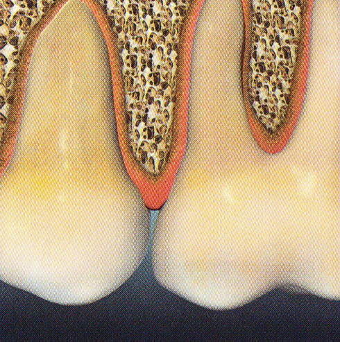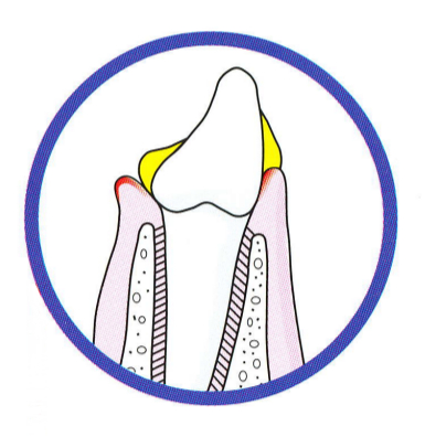 Dies ist der Zwischenraum zwischen Zahn und Zahnhalteapparat, bei der Parodontitis natürlich tiefer und größer ist als bei einem gesunden Zahn.